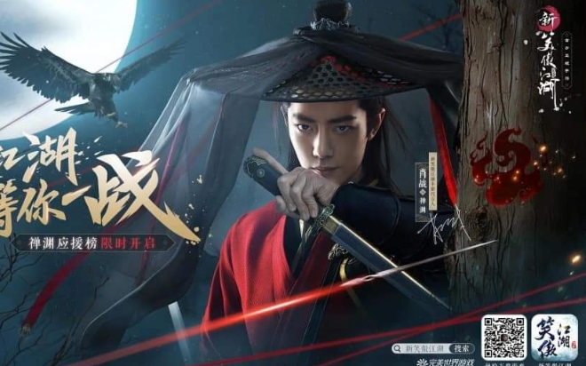 Một số hình ảnh mới nhất trong game Tân tiếu ngạo giang hồ do Tiêu Chiến đại diện lại vừa mới được tung ra. Trong game anh có hai tạo hình, một là đại hiệp Lệnh Hồ Xung với mái tóc búi cao đuôi ngựa khá ngẫu hứng trông tiêu sái, lãng tử; hai là nhân vật phản diện hư cấu Thiền Uyên, "trùm cuối" của Ảnh Tông. tạo hình đội nón đen kèm theo mạng che mặt lại khiến chúng ta bất ngờ, vì trông rất “hắc hóa”, giống thời kì Ngụy Vô Tiện tu ma trong Trần tình lệnh. Một số khác lại bảo anh chàng trông như phiên bản nam của Thánh cô Nhậm Doanh Doanh.