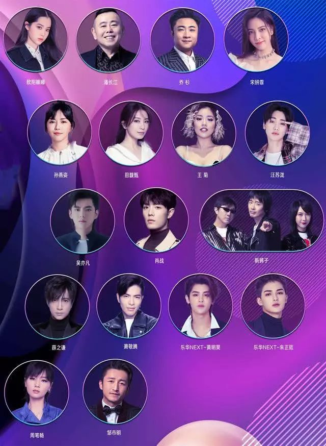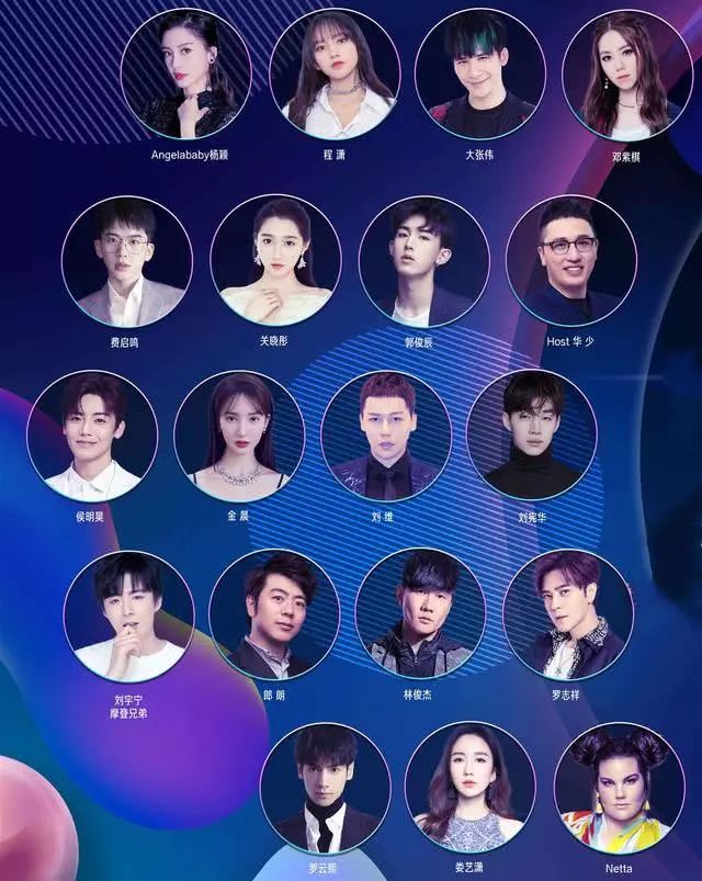 Về phía nữ nghệ sỹ có Angelababy, Trình Tiêu, Đặng Tử Kỳ, Quan Hiểu Đồng, Kim Thần, Lâu Nghệ Tiêu, Netta, Âu Dương Na Na, Tống Nghiên Phi, Tôn Yến Tư, Điền Phức Chân, Vương Cúc, Châu Bút Sướng.