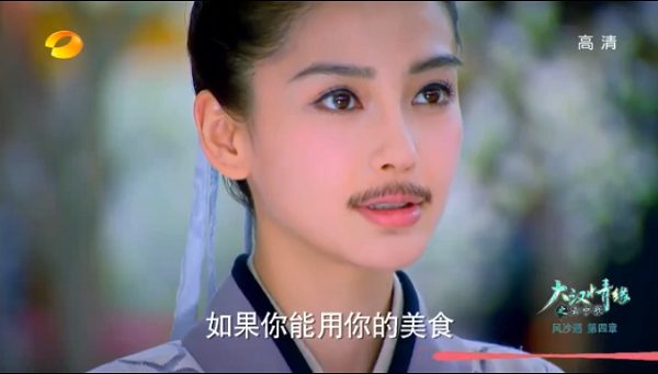 Một màn giả trai cực hài hước tiếp theo là Đường Yên trong Cẩm Tú Vị Ương. Ngay tập đầu tiên, khán giả đã không khỏi phì cười với tạo hình giả nam mà tóc xoăn tít lại có chỏm râu, tuy nhiên chân mày vẫn sắc nét, mắt vẫn long lanh, mi vẫn cong, môi vẫn son và má vẫn hồng. Cũng như Baby, Đường Yên cứ an phận làm nữ nhi thì đẹp hơn rất nhiều.