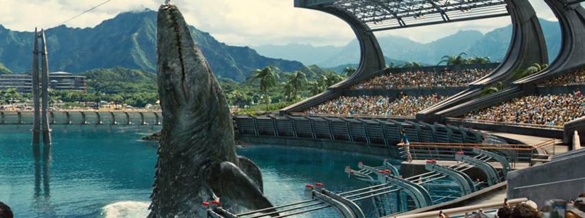 Xuất hiện từ 70 - 66 triệu năm trước, hàm răng của Mosasaurus không thể cắn con mồi thành từng miếng mỏng nhưng lại có khả năng kẹp và xé nát nạn nhân thành từng miếng vừa miệng. Nhờ cấu tạo đặc biệt ở phần sống lưng, Mosasaurus có thể săn mồi một cách nhanh nhẹn và dễ dàng. Là ngôi sao của một show diễn mang tính biểu tượng ở phần 1 Thế giới khủng long, Mosasaurus đã từng nhảy chồm lên từ trong lòng bể nước để ngoạm lấy con cá mập trắng khổng lồ đang được treo lơ lửng như một bữa ăn nhẹ của mình.