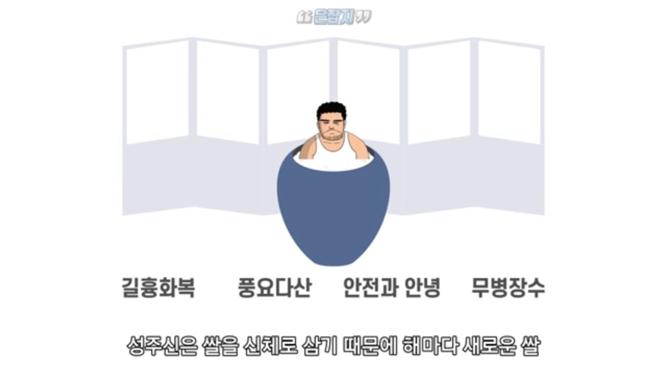 Đó cũng đã thích lý do tại sao Ma Dong Seok xuất hiện ở một căn nhà cấp bốn, cũ nát. Cùng với tổ thần, hộ thần cũng được cúng vào những ngày lễ trong gia đình hoặc khi có đồ ăn ngon. Ngoài ra, bên cạnh gia thần Sung Ju có còn các vị thần khác ở những nơi như trong căn phòng lớn, nhà bếp, trong sân vườn, giếng, phòng tắm,…