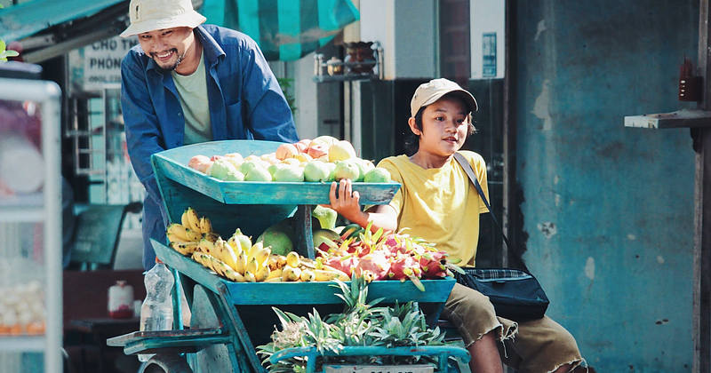 Hai cha con A Tẻo và Á mưu sinh bằng nghề bán trái cây dạo.