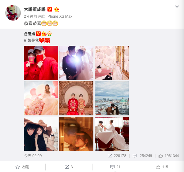 - Thích Vi: “Chú rễ không phải là tôi… Chúc cho Đường Đường xinh đẹp hạnh phúc, vui vẻ cả đời. Công chúa xinh đẹp một đời đáng để được yêu thương.