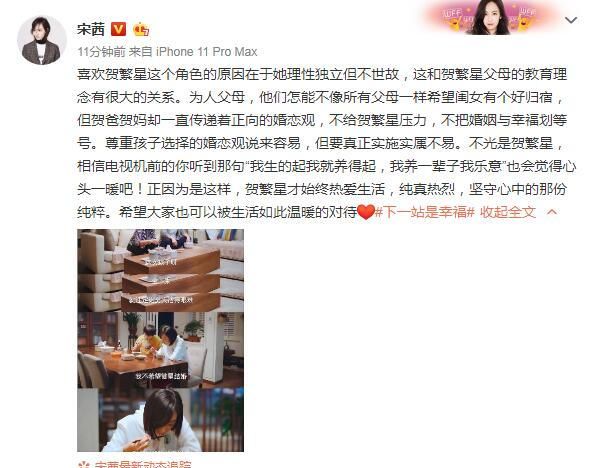 Vào ngày 29/01, Tống Thiến đã đăng tải bài viết với nội dung: “Mình thích nhân vật Hạ Phồn Tinh này là vì cô ấy độc lập trong suy nghĩ nhưng không quỷ quyệt. Việc này có liên quan khá nhiều trong vấn đề giáo dục con cái của cha mẹ Hạ Phồn Tinh. Là cha là mẹ, họ cũng giống với những bậc phụ huynh khác mong mướn con gái của mình có được bến đỗ hạnh phúc nhưng cha mạ Hạ Phồn Tinh luôn truyền tải quan điểm trực diện, tích cực trong hôn nhân.