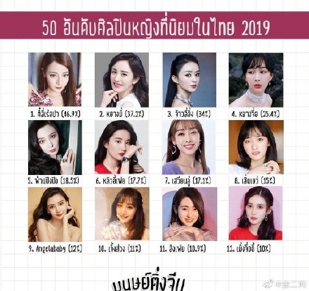 Top 10 nữ minh tinh Hoa Ngữ được yêu thích nhất ở Thái Lan: