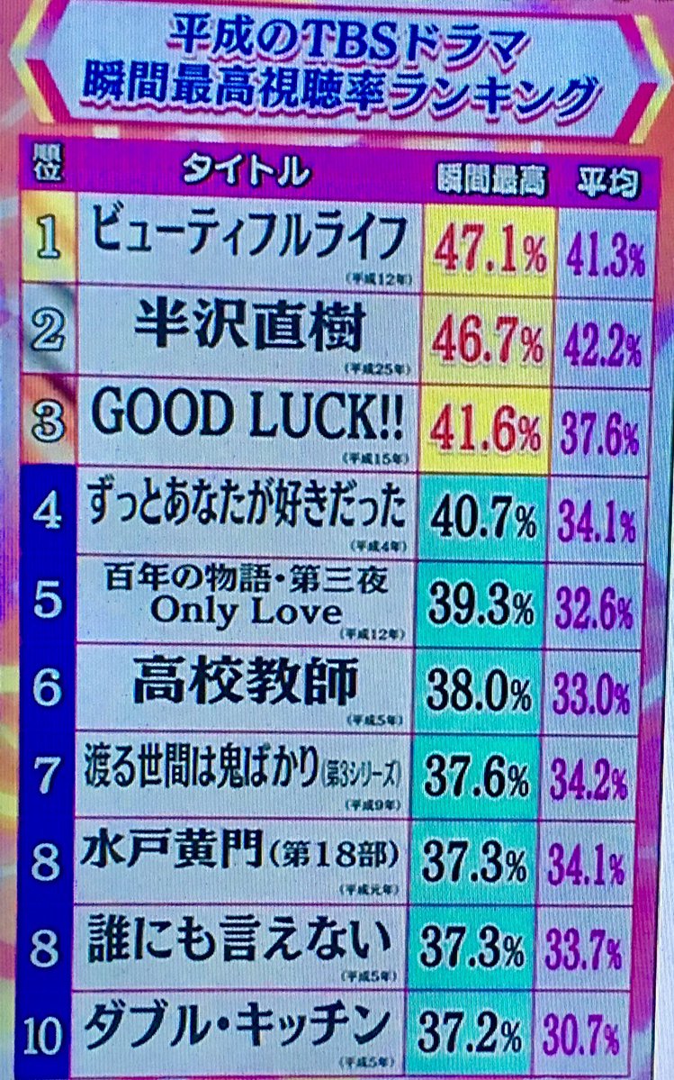 木村くん、さすが❤#王様のブランチ #平成のTBSドラマ瞬間最高視聴率ランキング pic.twitter.com/MZzL0n65fy