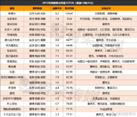 Top 20 webdrama hot năm 2019 (đến ngày 20 tháng 10):