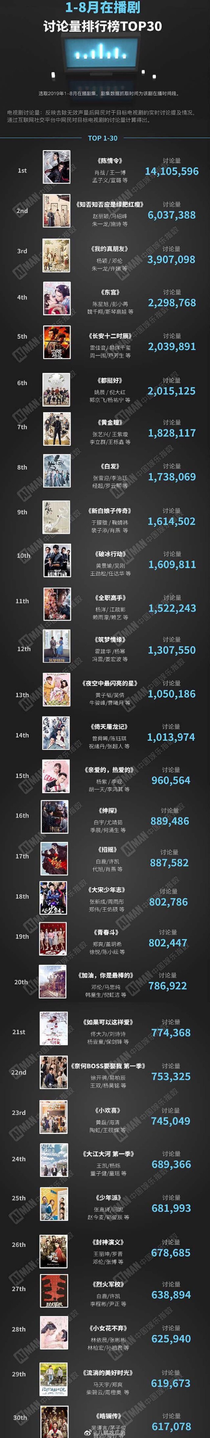 Top 30 bộ phim truyền hình có lượng thảo luận cao nhất từ tháng 1- 8/2019: