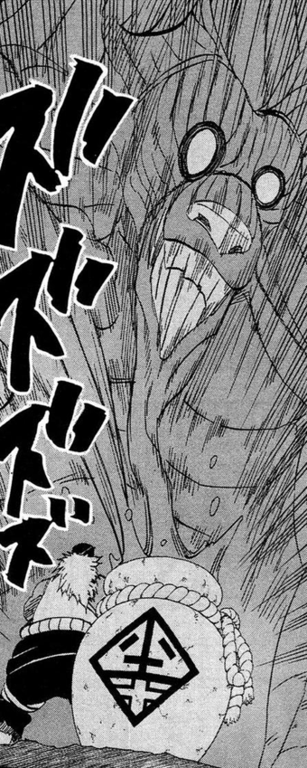 Tenten thì lấy Bashousen từ chiến trường về và dùng nó để phá hủy mặt nạ của Kakuzu. Sau đó, Obito đã cho Ngoại Đạo Ma Tượng nuốt Benihisago và Kohaku no Jouhei để hồi sinh Thập Vĩ.
