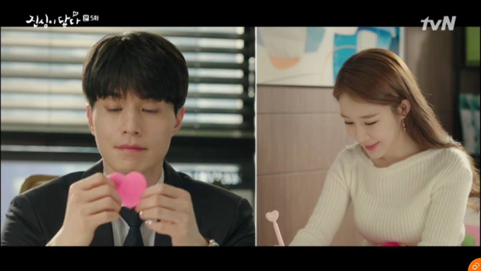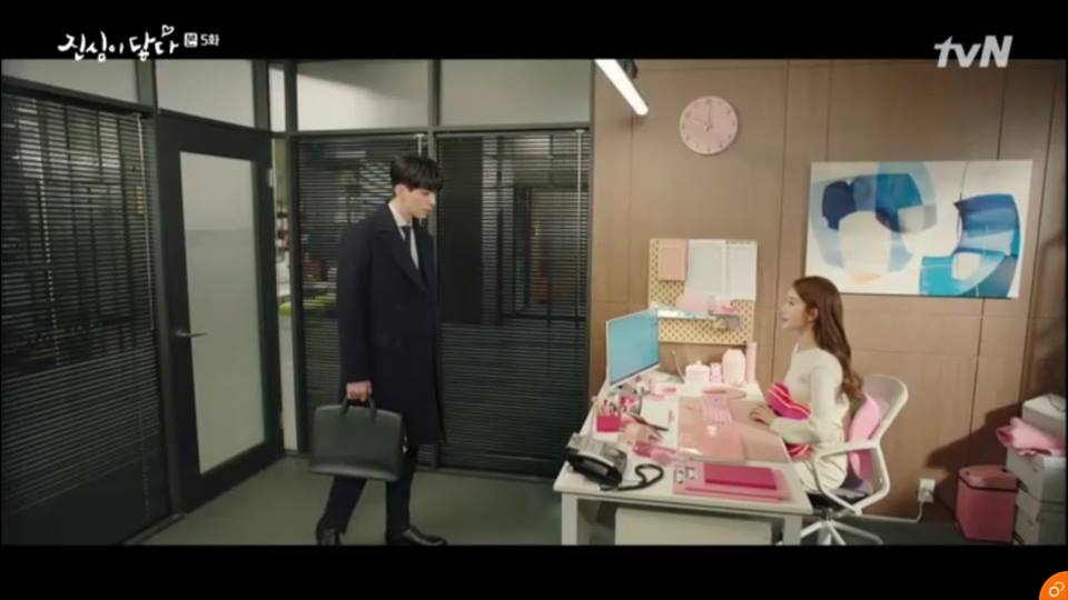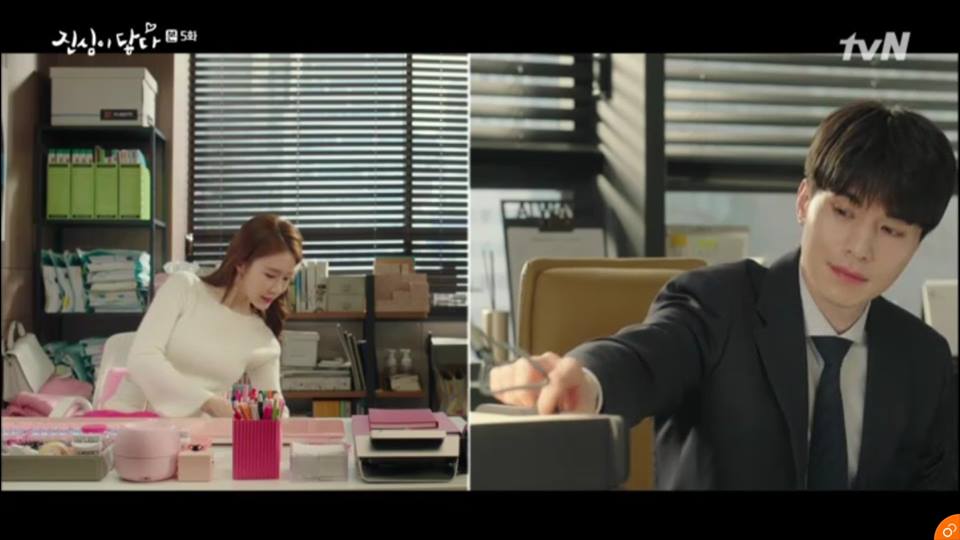 Trong tập 5 của Touch Your Heart (Chạm vào tim em), Yoon Seo ngày càng quý mến luật sư Kwon lạnh lùng hơn. Vì ước muốn khiến anh vui vẻ hơn mà còn tận tâm thay đổi màu sắc của toàn bộ phòng làm việc. Tiếc thay, chỉ cô thích màu hồng mộng mơ, Kwon Jung Rok nhanh chóng tỏ thái độ và mong muốn cô trả lại màu đen nguyên thủy.