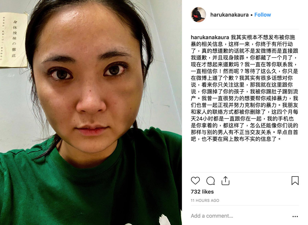 Như đã biết, ngày 20 tháng 11 năm 2018 vừa qua, trên mạng xã hội xuất hiện tin tức nghi ngờ Tưởng Kình Phu bạo hành khi bạn gái người Nhật Bản của anh là Haruka Nakaura vừa đăng lên tấm hình mặt mũi bầm dập với thân hình đầy những vết thương lớn đồng thời viết: “Thời gian gần đây phải để những người quan tâm đến tôi lo lắng rồi, tôi, Haruka Nakaura vẫn khỏe mạnh. Tưởng Kình Phu hành tung không rõ thật sự có liên quan đến tôi. Ứng với yêu cầu của Luật sư và nhân viên liên quan điều tra, tôi không tiện tiết lộ quá nhiều”.