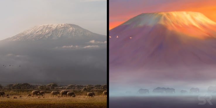 Nếu như Kilimanjaro trong phiên bản hoạt hình được thực hiện như một màn sương mờ ảo với lớp băng mỏng hiện lập lờ trên đỉnh núi thì ở phiên bản live-action, Kilimanjaro hiện lên một cách rõ nét hơn, “chân thực” và nổi bật hơn với những hình ảnh về những khối băng ở đỉnh, những đám mây phủ bọc; và ngay cả những con chim, những con voi châu Phi cũng được hiện lên “rõ mồn một”.