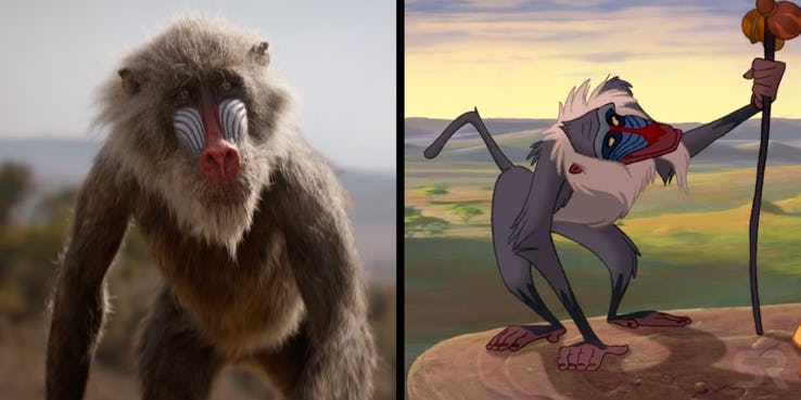 Rafiki là một trong những nhân vật được yêu thích nhất trong The Lion King. Và sự khác biệt rõ nhất trong phiên bản remake này chắc ai cũng thấy đúng không: Đó chính là cây gậy “thương hiệu” của ông ấy - Disney hoàn toàn không cho vào trong phiên bản live-action này.