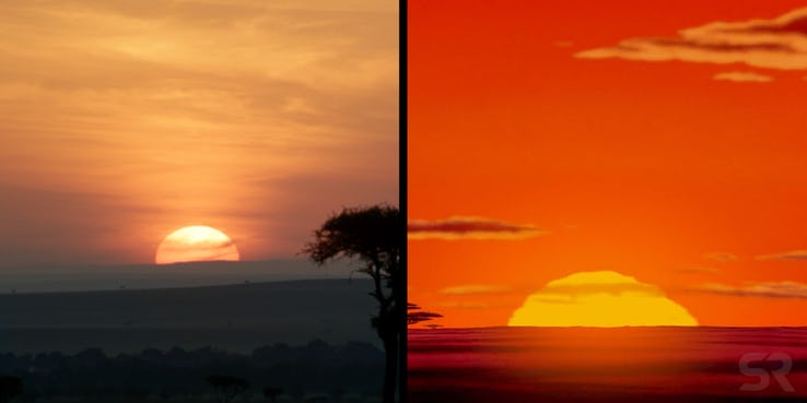 Sự khác nhau ở đây chính là, nếu như ở phiên bản hoạt hình, vùng thảo nguyên hiện lên chỉ với một cây bao báp đứng lẻ loi và hiên ngang thì ở phiên bản remake này, công nghệ CGI lại mang đến một vùng đất đa dạng hơn.