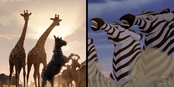 Nếu như ở phiên bản hoạt hình, chúng ta chỉ nhìn thấy những nhóm ngựa văn, hươu cao cổ và voi đứng thành đàn với nhau, thì ở bản remake này, nó khiến người xem cảm thấy sự chân thật và “tự hào” hơn với sự xuất hiện của tất cả các sinh vật của Châu Phi, đang đứng bên nhau ca tụng vị vua tương lai của chúng