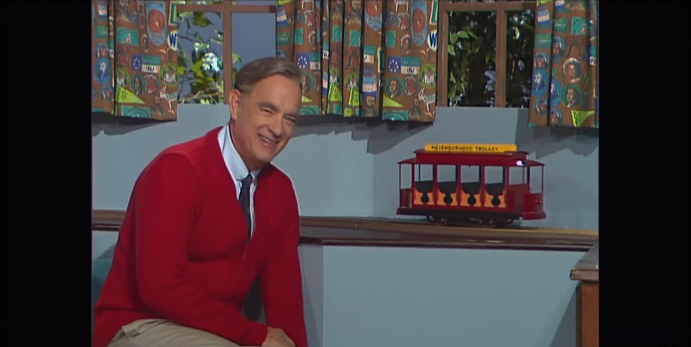 “Tom Hanks vào vai Ngài Rogers trong phim A Beautiful Day in the Neighborhood - dựa trên câu chuyện có thật về tình bạn giữa Fred Rogers và anh chàng nhà báo Tom Junod, cũng như thông điệp chưa bao giờ cũ về lòng nhân ái chiến thắng sự hoài nghi. Phim theo chân cây bút tạp chí Tom Junod đang đánh mất nhiệt huyết với nghề, bỗng một ngày biết được về lý lịch, cuộc đời và sự nghiệp của Fred Rogers - “người hàng xóm” được yêu mến nhất nước Mĩ. Sau đó, anh dần dần ngừng hoài nghi về bản thân, học được cách đồng cảm, sẻ chia, cách đối nhân xử thế và trở nên tốt đẹp hơn“.