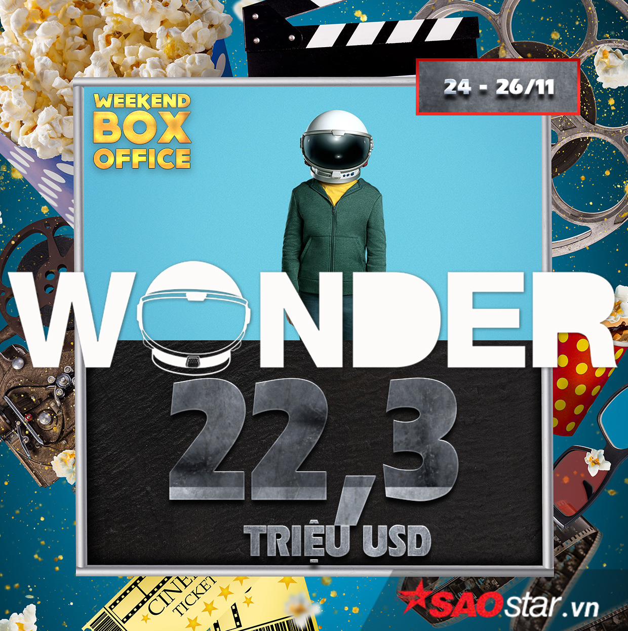Bộ phim Wonder của hãng Lionsgate đứng thứ 3, giảm 19% so với tuần trước với 22,3 triệu USD trong 3 ngày cuối tuần vừa qua, nâng tổng doanh thu của phim lên 70 triệu USD.