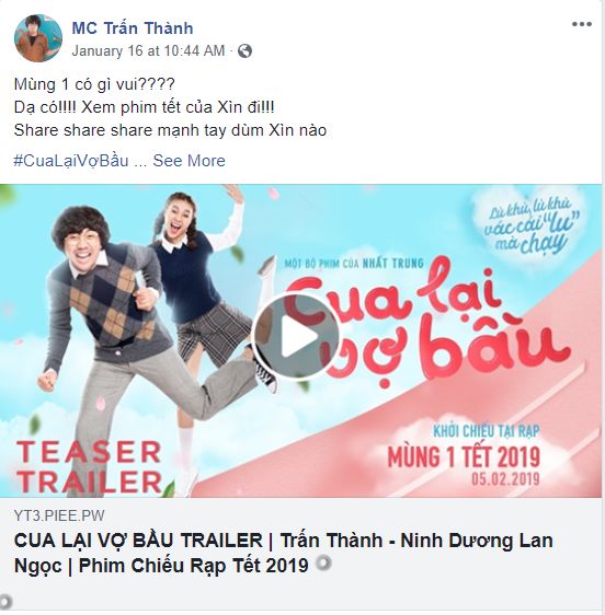 Thế nhưng, Trấn Thành chỉ đăng tải một tấm poster chính thức, “quên” mất việc chia sẻ trailer cũng như thông báo phim Trạng Quỳnh chiếu vào thời điểm ra mắt. Vậy nên, xét về tình, thì A Xìn có lẽ chưa thể khiến mọi người đồng ý rằng anh đã cư xử đúng.