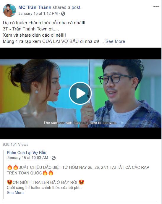 Trong khi đó, Cua lại vợ bầu đã công bố đây sẽ là phim Tết đầu tiên của Trấn Thành vào ngày 05/09/2018. Kể từ đó, bộ phim được quảng bá rầm rộ với sự góp mặt của A Xìn khiến nhiều khán giả trông đợi hơn vào mùa phim Tết năm nay.