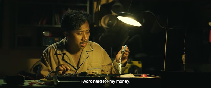 Nhưng đâu phải chỉ có thế, 30 giây cuối khán giả còn thấy một khía cạnh khác của Ba Sang. Chẳng rộn ràng, bao đồng như thường ngày, ông cặm cụi làm việc trong bóng tối với nhiều mối lo. Để rồi cuối cùng thốt lên một câu nói khiến khán giả ngậm ngùi:"Nuôi con thì nó dễ, còn con nuôi thì nó nhục".