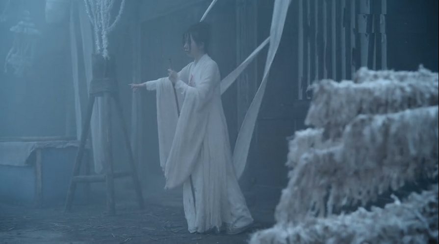 Khi tạm trú trong một căn nhà bí ẩn, bọn họ nhìn thấy hung thi của A Tinh (trong nguyên tác là A Thiến), vốn có vẻ ngoài khá đáng sợ với tròng mắt trắng dã, thất khiếu chảy máu, không có lưỡi, áo quần rách tả tơi dính máu, cầm cây gậy trúc khua loạn khiến các hậu bối đều giật mình kinh sợ.