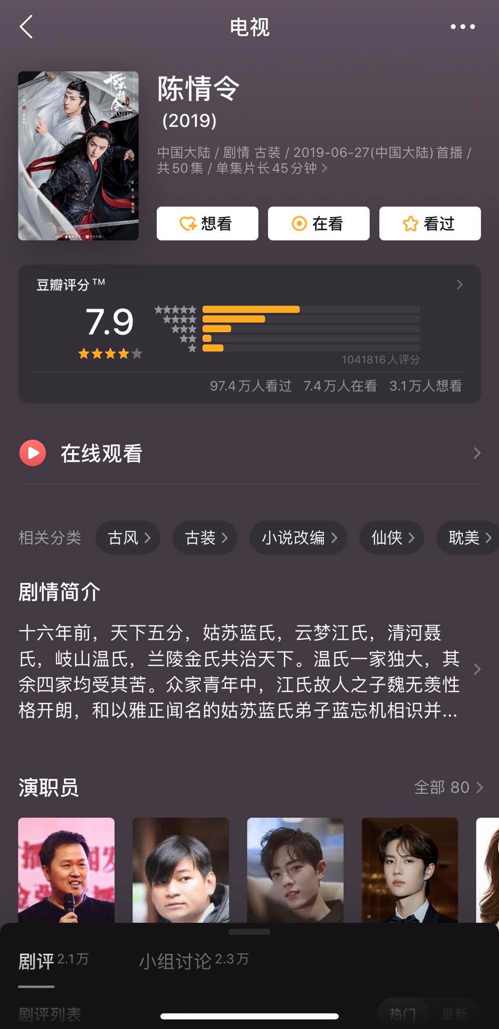 Tiêu Chiến gây ấn tượng không phải chỉ vì ngoại hình soái ca đậm chất thư sinh, diễn xuất của anh chàng chính là điều mà khán giả vô cùng yêu thích.Với lối diễn xuất vô cùng tự nhiên, Tiêu Chiến dường như đã khiến khán giả cảm nhận được anh chàng giống như 1 Nguỵ Vô Tiện bước ra từ quyển tiểu thuyết. Trần Tình Lệnh chính là minh chứng cho việc bảo chứng rating, không chỉ vậy bộ phim còn đạt được vô số thành tích khủng, cùng với đó là điểm đánh giá douban “cực cao” 8,2. Tuy nhiên sau sự kiện này, điểm douban của bộ phim đang giảm mạnh khi chỉ sau vài ngày con số đã giảm xuống 7,9 với 9,6% lượt đánh giá 1 sao.