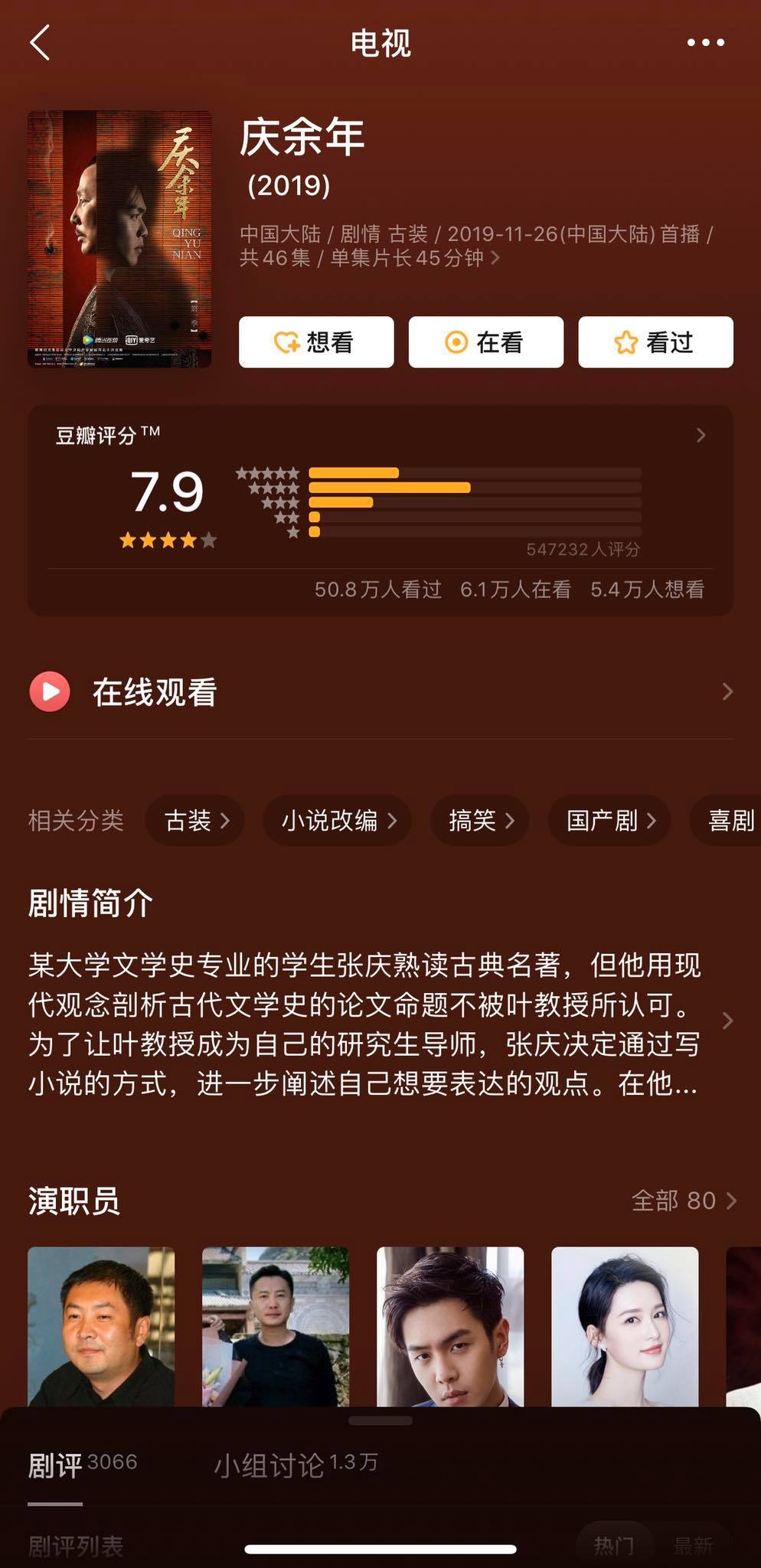 Mặc dù đã bị “ém hàng” gần 2 năm, song Khánh Dư Niên đã có dịp lên sóng với khán giả vào ngày 26/11 năm vừa qua. Ngay sau khi ra mắt, bộ phim do dàn diễn viên thực lực như: Trương Nhược Quân, Lý Thấm, Tiêu Chiến,…tham gia đã nhận được về nhiều phản hồi tích cực từ phía khán giả với điểm douban “khủng” là 8,0. Tuy nhiên sau sự kiện vừa qua, điểm douban của Khánh Dư Niên hiện còn 7,9 và vẫn đang có dấu hiệu giảm liên tục.