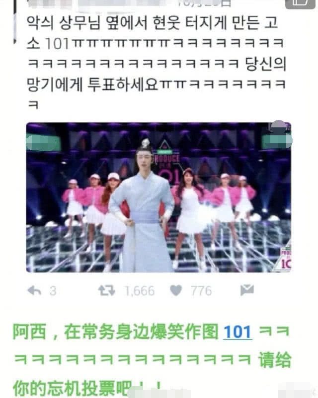 Thậm chí, có dân mạng còn phát huy tài năng photoshop tạo hình của Lam Vong Cơ vào show Sáng tạo 101. Vương Nhất Bác mặc trang phục cổ trang đứng trong dàn nữ sinh mặc váy ngắn.
