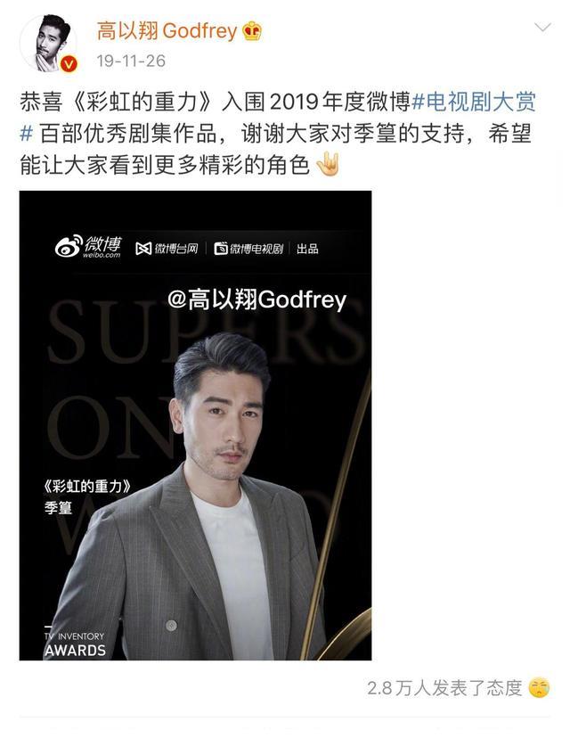 Dù đã ra đi mãi mãi hơn một tháng qua nhưng fan và khán giả vẫn không thể nào quên Cao Dĩ Tường, họ vẫn luôn muốn tưởng niệm hay làm điều gì đó cho anh. Thông qua bỏ phiếu với thời gian dài của người hâm mộ, Cao Dĩ Tường đã trở thành diễn viên có nhân khí cao nhất. Nhờ vào vai diễn Quý Hoàng trong phim Trọng lực của cầu vòng, Cao Dĩ Tường nhận được sự yêu quý của mọi người. Bên phía tổ chức đưa ra ba cụm từ cốt lõi làm mọi người cảm thấy đau lòng vô hạn: “Thâm tình, nhiệt tình, tư niệm (nhớ nhung) vô tận“.