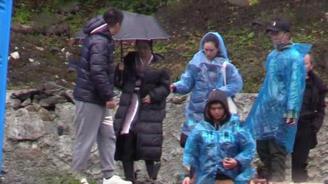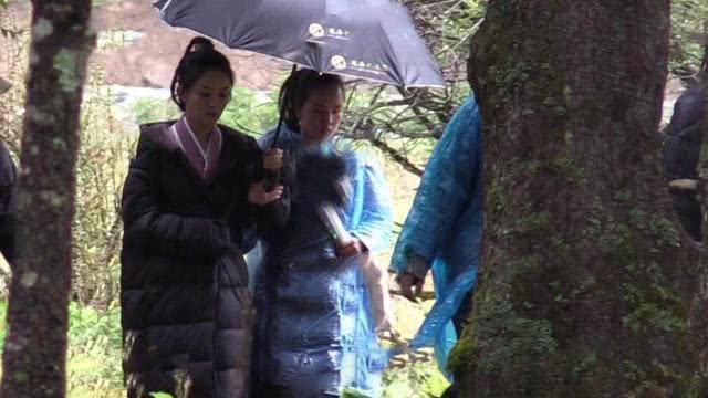 Do trời mưa đường rất trơn, Triệu Lệ Dĩnh che dù thận trọng bước xuống sườn đồi. Vì sợ trượt chân, nữ diễn viên vịn tay trợ lý nam cẩn thận bước từng bước. Dưới chân đồi, Triệu Lệ Dĩnh chia sẻ một nửa chiếc ô cho trợ lý, mối quan hệ giữa hai người trông giống như những người bạn. Điều này chứng tỏ nàng tiểu hoa đối xử với nhân viên rất tốt.