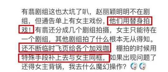 Ngoài ra, nhà sản xuất không ngừng tăng thêm cảnh quay cho diễn viên phụ, thậm chí còn chia ra thành mấy tổ để quay. Vì vậy, nữ chính cũng chẳng biết những tổ khác quay những cảnh gì, kịch bản sẽ thành ra như thế nào.