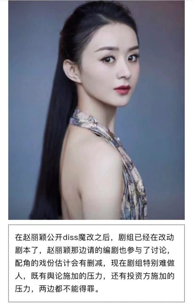 Sau bài trực tiếp “tố” thẳng thừng ekip, nhiều nguồn tin cho rằng Triệu Lệ Dĩnh quyết làm cứng rắn chuyện này. Nữ diễn viên đưa ra yêu cầu phải có quyền nhúng tay vào kịch bản, sẽ đưa biên kịch riêng của mình chỉnh sửa lại nội dung. Đây chính là điều kiện tiên quyết mà Triệu Lệ Dĩnh đưa ra với đoàn phim nếu như muốn cô hoàn thành nốt tác phẩm này.