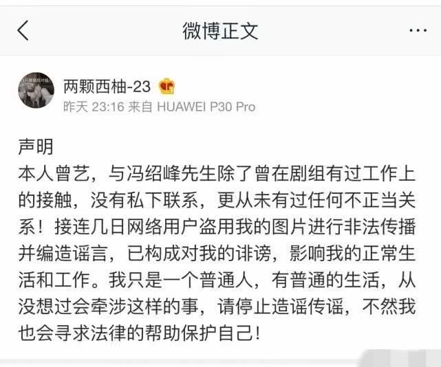Trước thời điểm Triệu Lệ Dĩnh tái xuất, trên mạng lan truyền tin đồn Phùng Thiệu Phong phản bội vợ, ngoại tình khi quay phim ở bên ngoài. Ngay lập tức, rất nhiều fan hâm mộ bất bình, lên tiếng giải thích rằng thần tượng vẫn luôn hạnh phúc. Nam diễn viên cũng nhanh chóng đăng bài mạnh mẽ bác bỏ tin đồn, bày tỏ những hình ảnh trên mạng đều là sản phẩm của photoshop nhằm bôi nhọ anh.