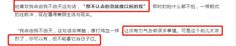 Đồng thời, cô bày tỏ lúc chưa quay trở lại làng giải trí khi đang ở cữ sau khi sinh con, thời điểm này trùng hợp lại ra rạp xem bộ phim Na Tra: Ma đồng giáng thế. Trong tác phẩm này có một câu nói khiến bản thân cô rất thích thú: “Mệnh tôi là do tôi quyết định, không phải do trời”. Câu nói này đã truyền rất nhiều cảm hứng cho Triệu Lệ Dĩnh, kích th.ích tinh thần chiến đấu và cho bản thân cô rất nhiều sức mạnh để hoàn thành công việc. Tuy nhiên, cô sẽ không dựa vào câu nói này làm mục đích sống của cả đời.