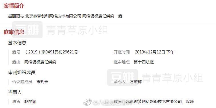 Với việc nổi tiếng như Triệu Lệ Dĩnh thì cũng không tránh khỏi tình trạng thường xuyên bị chỉ trích hay nói xấu trên mạng xã hội, việc nữ diễn viên tiến hành khởi kiện đôi khi cũng diễn ra. Và mới đây, dân mạng phát hiện trên một trang tòa án, Triệu Lệ Dĩnh đã khởi kiện một người tên Dương Trí Hồng (Bạch Mã).