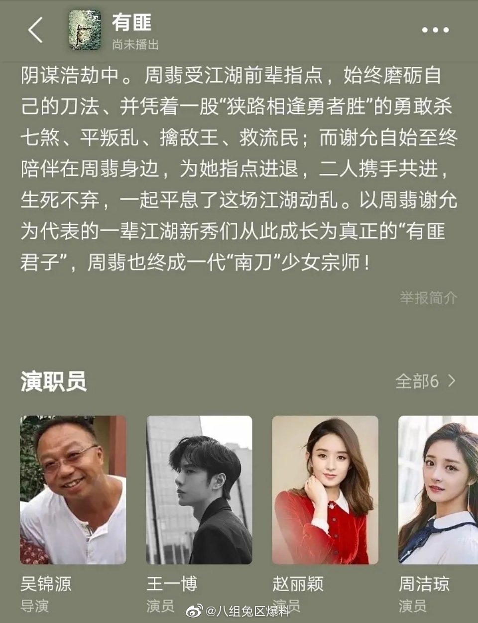 Nhưng mới đây, điều làm khán giả chú ý chính là danh sách phiên vị của diễn viên trên Douban đã bị thay đổi. Trước đây nếu như tên Triệu Lệ Dĩnh để trước tên của Vương Nhất Bác thì giờ đây tên của Vương Nhất Bác đã được thay đổi để trước tên của Triệu Lệ Dĩnh.