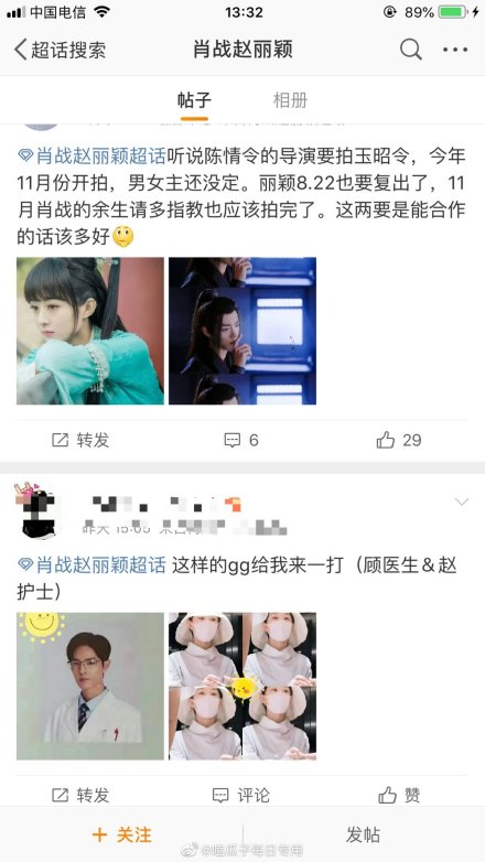 Dù Tiêu Chiến và Triệu Lệ Dĩnh chưa từng hợp tác cùng nhau lần nào nhưng vẫn xuất hiện fan couple của cả hai, khi mới đây có người tạo nhóm siêu chủ đề Tiêu Chiến - Triệu Lệ Dĩnh cho hai người họ. Lượng fan hâm mộ hiện tại cũng chưa phải là đông.