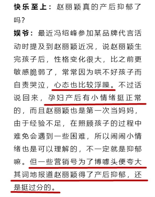 Ví dụ như lúc bồng bế con, cô ấy cảm thấy bản thân mình không chăm sóc tốt cho con thì sẽ khóc, đây thực tế là những chuyện hết sức, hết sức bình thường. Rất nhiều phụ nữ lần đầu tiên sinh con cũng đều như vậy, hoàn toàn có thể lý giải được. Đối với những cư dân mạng trực tiếp giải thích nói rằng Triệu Lệ Dĩnh mắc bệnh trầm cảm thực sự có phần hơi quá đáng.