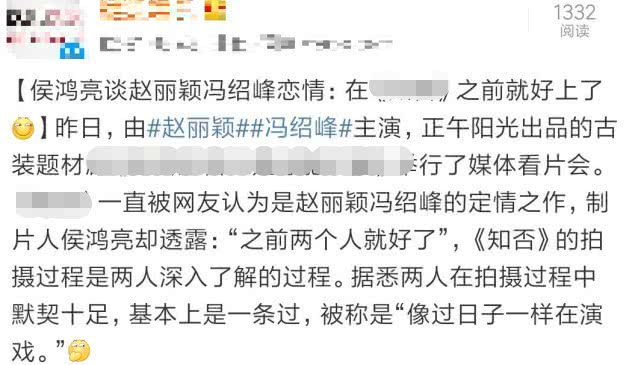 Tháng 4 năm nay, một bình luận của cư dân mạng trên tieba tiết lộ: “Khoảng 6 giờ chiều nay, tại khách sạn Four Seasons Koh Samui, Triệu Lệ Dĩnh và Phùng Thiệu Phong nắm tay nhau tản bộ tại bể bơi công cộng, cả hai vô cùng ngọt ngào“.