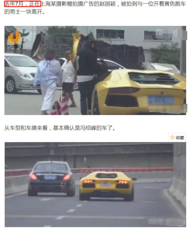 Tháng 7 năm 2017 khi paparazzi bắt gặp 1 chiếc xe Lamborghini đến đón nàng “Sở Kiều”. Cả Triệu Lệ Dĩnh và bạn trai bí mật cùng mặc áo đôi, xuất hiện trên một con phố ở Thượng Hải và rồi tiếp tục bị bắt gặp tại một khách sạn. Sau khi điều tra, chủ nhân của chiếc xe ấy được xác định là Phùng Thiệu Phong. Cả vóc dáng lẫn đường nét lộ ra sau lớp khẩu trang được nhiều fan chắc chắn đây chính là tài tử họ Phùng.