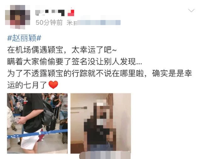Ngày trước, có dân mạng ở sân bay quốc tế ngẫu nhiên gặp được Triệu Lệ Dĩnh đang đứng xếp hàng làm thủ tục. Người này bày tỏ mình quá may mắn, nhưng lại không tiết lộ hành trình nàng tiểu hoa sẽ đến nước nào, nhưng có thể xác định được chính là ra nước ngoài, khả năng lớn cô vẫn trong thời gian nghỉ dưỡng chưa muốn tái xuất với công việc.
