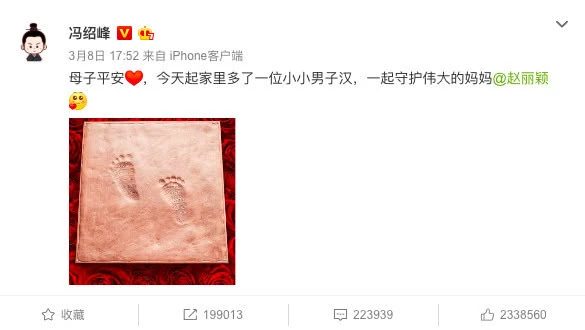 Ngày 8 tháng 3 vừa qua, Phùng Thiệu Phong đã đăng lên weibo cá nhân của mình tấm hình dấu chân nhỏ của tiểu bảo vối tuyên bố Triệu Lệ Dĩnh chính thức hạ sinh con trai đầu lòng. Mặc dù trong bình luận không ít lời chức mừng của mọi người nhưng vẫn có rất nhiều cư dân mạng nhìn thấy không thể hiểu rõ: Từ khi hẹn hò đến kết hôn, từ bao lần phủ nhận mang thai đến khi thuận lợi sinh con thì danh tiếng và sự uy tín của vợ chồng họ vẫn sẽ như trước được sao?