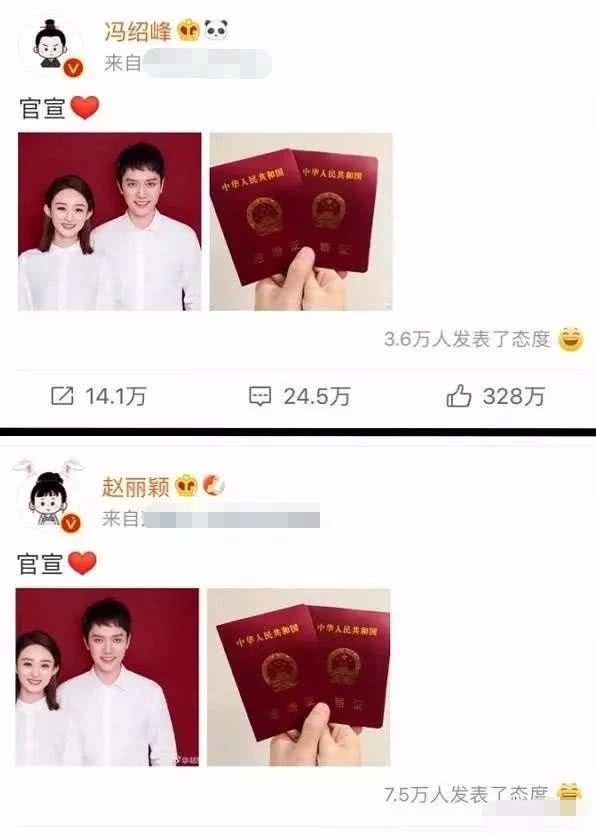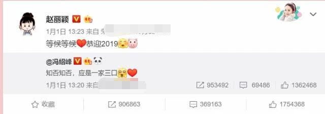 Khi một năm mới bắt đầu thì câu nói “thời gian sẽ chứng minh tất cả” cuối cùng cũng có kết quả khi Phùng Thiệu Phong đăng trên Weibo tuyên bố việc Triệu Lệ Dĩnh mang thai, ngay sau đó cô nàng cũng chia sẻ lại nhận được nhiều lời chúc phúc từ phía người hâm mộ thế nhưng cũng có không ít cư dân mạng cảm thấy phản cảm.