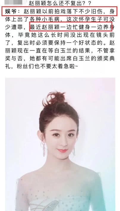 Trước đây, vào thời điểm mang thai mà Triệu Lệ Dĩnh dùng hành động xoạc chân để phủ nhận đã gây không ít phản cảm cho cư dân mạng, có người còn cười nhạo Triệu Lệ Dĩnh nói dối thành nghiện như Trương Bá Chi. Vì vậy, điều bây giờ Triệu Lệ Dĩnh cần làm nhất là mau sớm quay lại, dùng tác phẩm truyền hình để cứu danh tiếng của mình.
