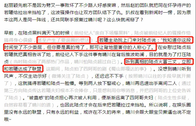 Nhưng cũng mới đây, có một blogger khác tiết lộ Triệu Lệ Dĩnh không phải lần đầu gặp phải đả kích như thế này. Trước đây, nữ diễn viên từng bị tiết lộ lịch sử đen, Triệu Lệ Dĩnh từng có ý nghĩ rút chân ra khỏi ngành giải trí, lúc đó là nhờ có Lưu Thi Thi đích thân đến an ủi mới giúp Triệu Lệ Dĩnh phấn chấn lại.