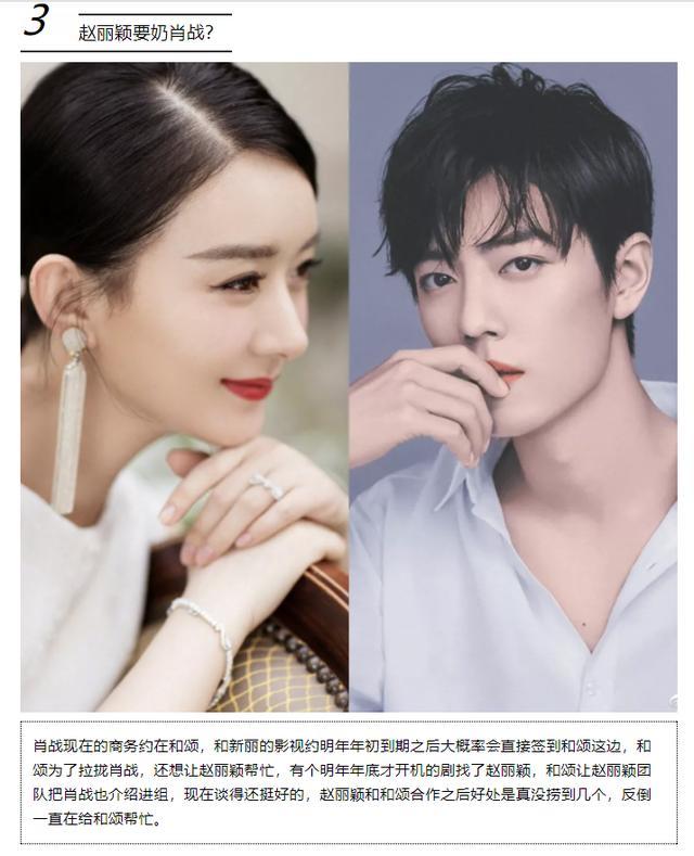 Mà Hòa Tụng vì lôi kéo Tiêu Chiến sẽ để Triệu Lệ Dĩnh ra giúp. Cuối năm sau, có một dự án mới sẽ khai máy đã tìm đến Triệu Lệ Dĩnh, Hòa Tụng muốn đoàn đội Triệu Lệ Dĩnh giới thiệu Tiêu Chiến với đoàn phim. Blogger tiết lộ song phương hiện tại đang đàm phán vô cùng tốt.
