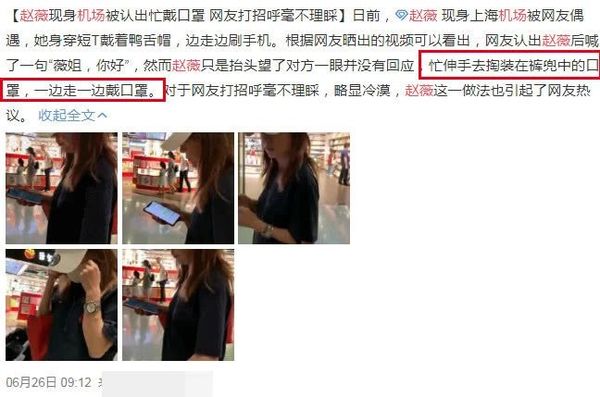 Hai tháng trước, fan hâm mộ trông thấy Triệu Vy tại sân bay, thế nhưng nữ diễn viên lại lạnh lùng, vội vàng đeo khẩu trang che đi khuôn mặt mộc của mình, gây nên sự tranh cãi không đáng có trên mạng xã hội. Có người thì bảo Triệu Vy chảnh chọe, ra vẻ ngôi sao trong khi fan ra sức bênh vực cho cô, bày tỏ với lịch trình cá nhân, mỗi người nghệ sỹ đều không muốn mình bị làm phiền.