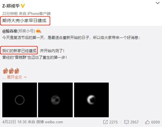 Tối qua, một tài khoản lớn cho biết, Trịnh Sảng đã dùng tài khoản khác có tên “Kình Cốc Tọa” tuyên bố kênh hoạt động trao đổi qua lại với fan hâm mộ là Nhóm Tuyết Cao cũng đã chính thức thăng cấp hoàn tất, trong bài viết đó cho biết: “Nhà mới của chúng ta cũng đã được xây dựng xong rồi“.
