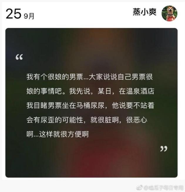 Thế nhưng, ở một viễn cảnh khác, có một cư dân mạng đã up lên tấm hình mà Trịnh Sảng nói về bạn trai của mình khi tám cùng fan hâm mộ. Trong đó Trịnh Sảng nói đùa rằng mình có một người bạn trai rất “nữ tính”, đồng thời còn khai ra chuyện “cá nhân thầm kín” của bạn trai mình, mà chuyện cá nhân thầm kín đó chính là chuyện anh bạn trai này của cô khi đi WC ngồi trên bồn cầu vì anh sợ nếu đứng như bao người chàng trai khác thì nước tiểu sẽ văng ra làm bẩn nơi đó, như vậy thì không tiện cho lắm.