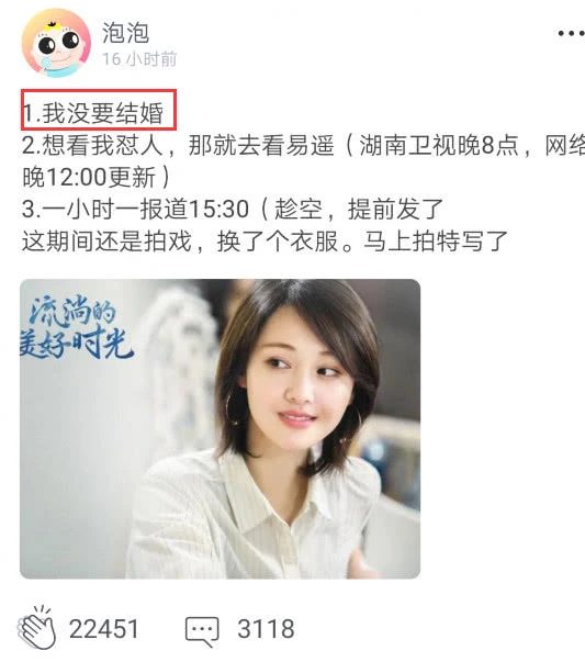 Ngoài ra, Trịnh Sảng còn nói bản thân không có muốn kết hôn, phủ nhận tin đồn kết hôn cùng bạn trai Trương Hằng. Nguyên nhân có thể là “Chưa điên đủ, tạm thời không phải là lúc nói chuyện cưới gả”, “Chuyên tâm công việc, không muốn nghĩ đến chuyện kết hôn“….